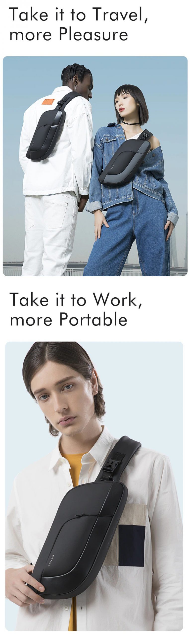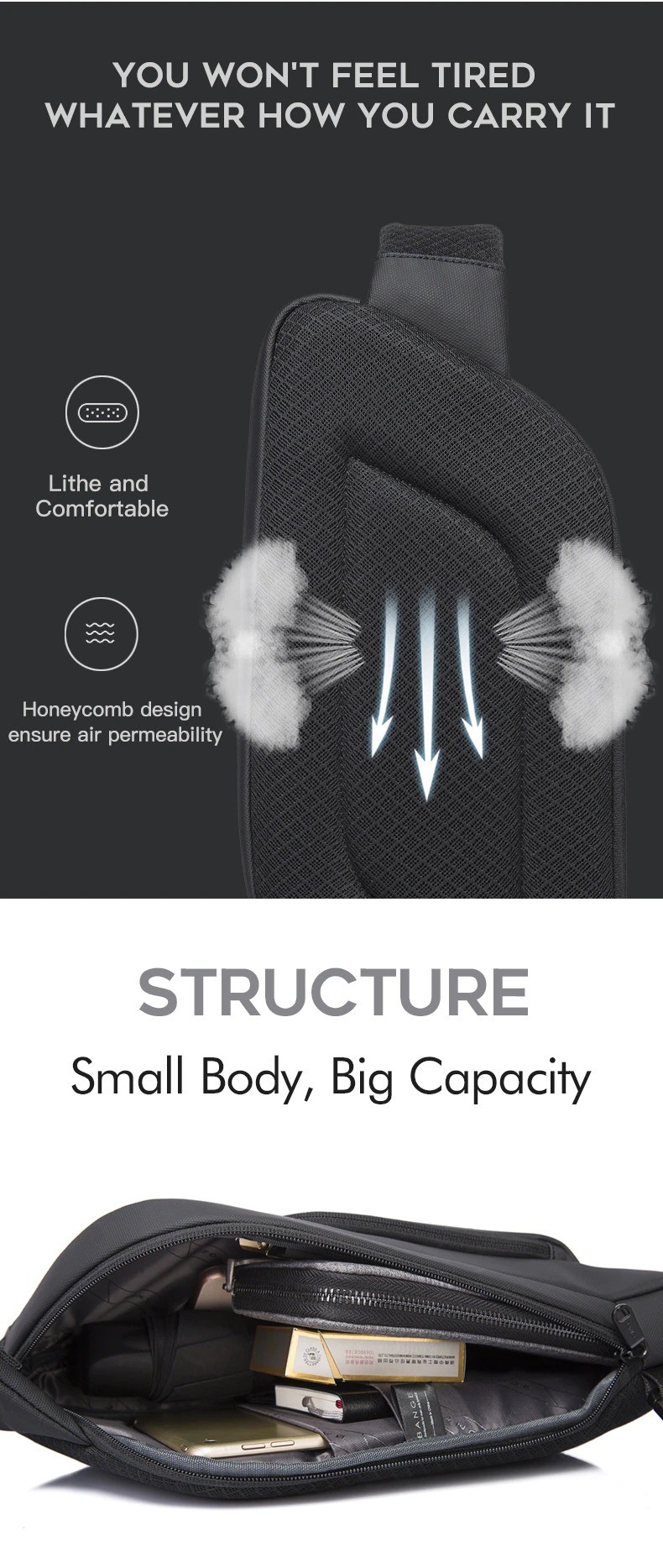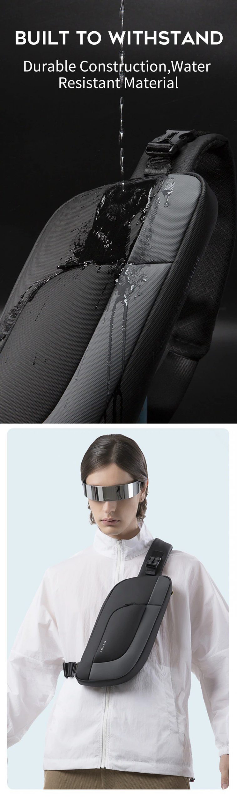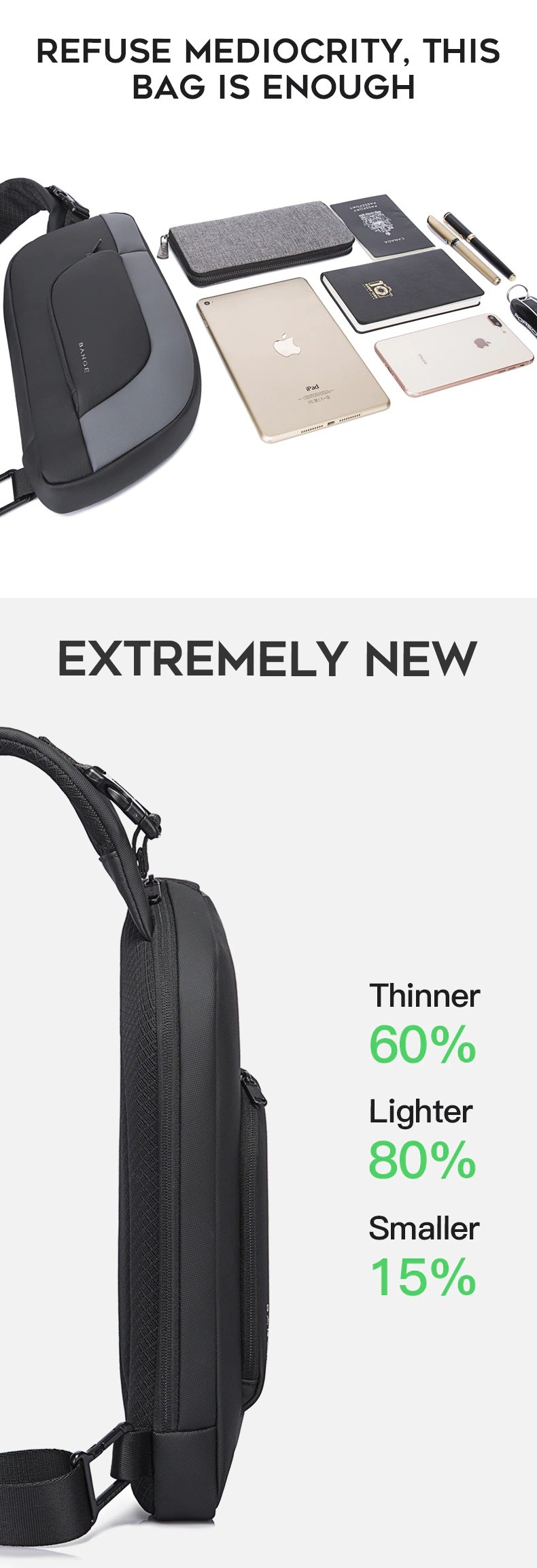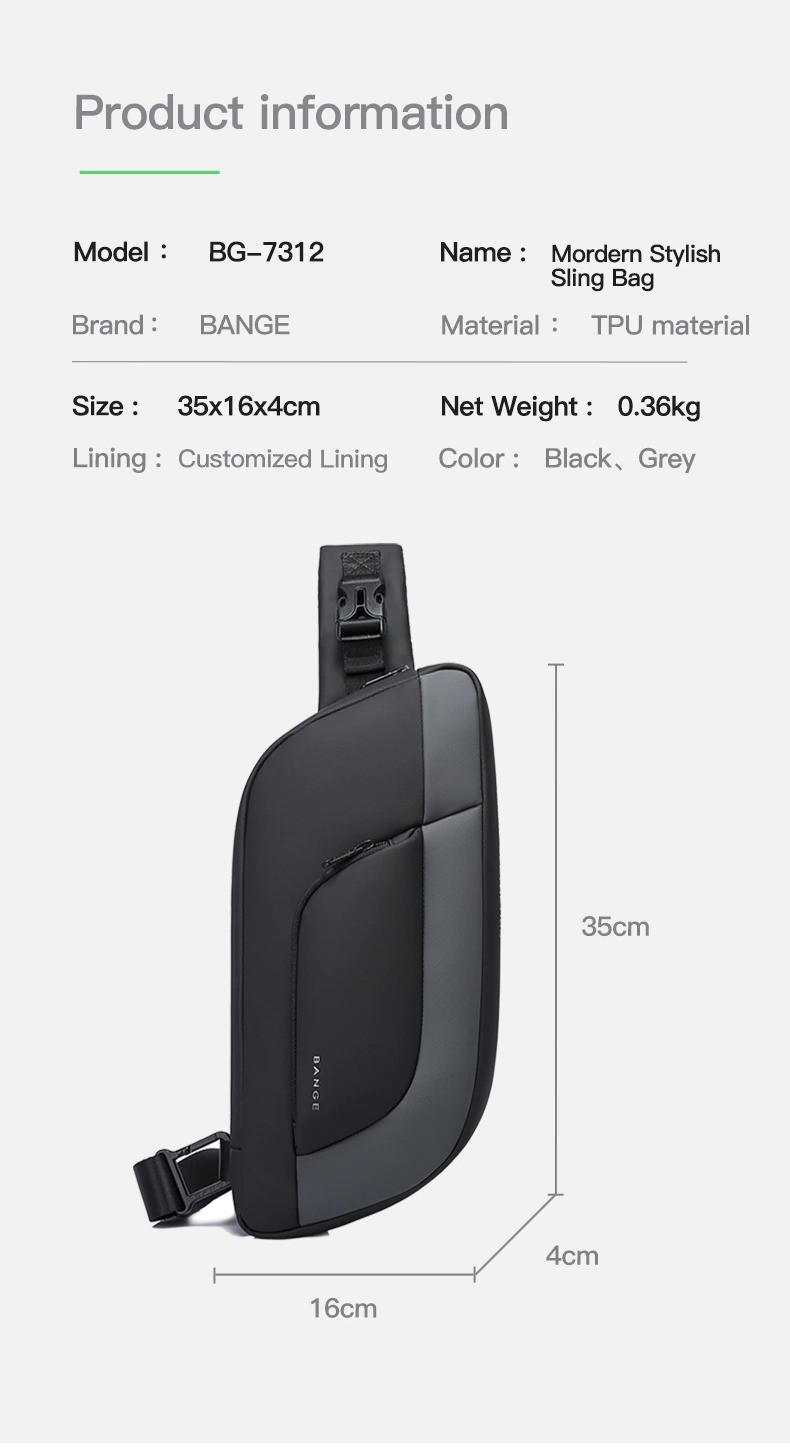 Túi đeo chéo messenger Bange BG-7312 unisex có thiết kế gọn nhẹ và hiện đại, chất liệu cao cấp siêu chống nước, chống rạch, mặt lưng với đệm lưới bọt biển êm ái thoáng khí, cùng với cấu trúc bền bỉ và cứng cáp bảo vệ an toàn đồ dùng cá nhân của bạn, là món phụ kiện bạn có thể luôn mang theo bên người đến bất cứ nơi đâu.